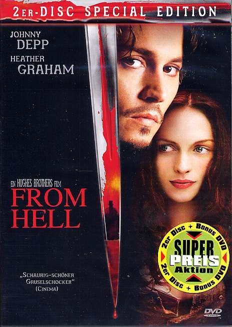 DVD-Extras: DISC 1: Audio-Kommentare der Hughes Brüder, 21 unveröffentlichte Szenen mit optionalem Kommentar der Regisseure - DISC 2: HBO Special: "A View from a Hell", Featurettes: "Production Design", "Tour of Murder Sites", "From Hell Graphic Novel", "Absinthe makes the Heart grow Fonder", "Victim/Suspect Profiles